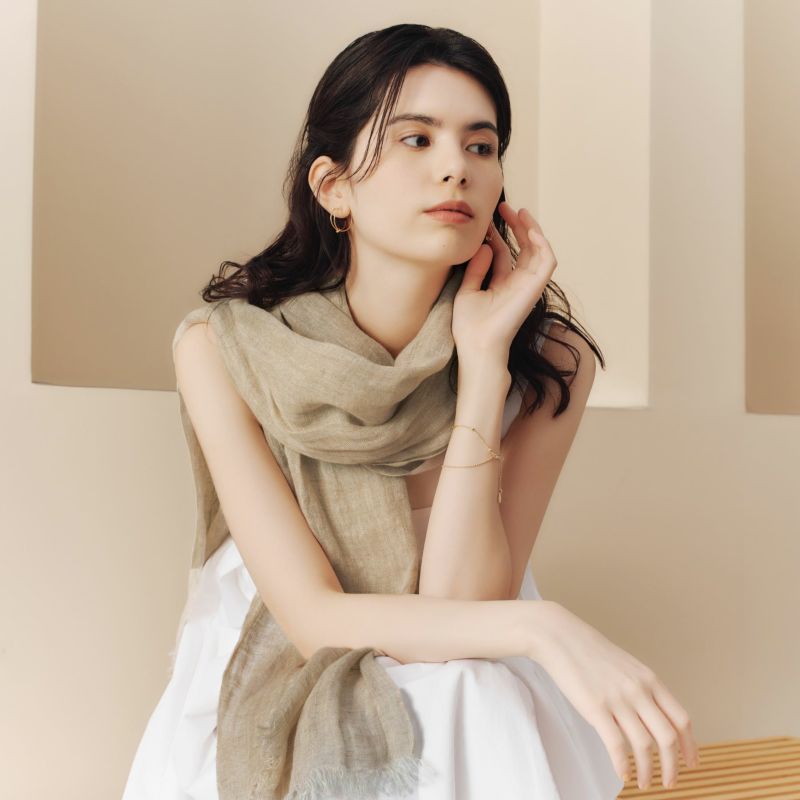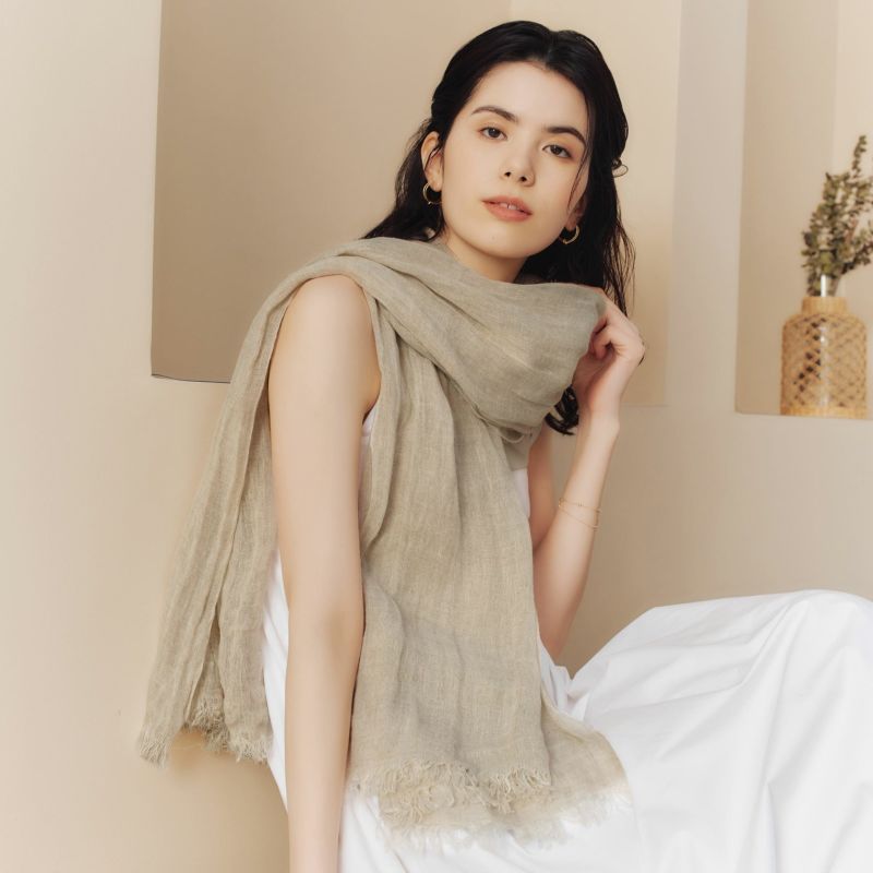 天然繊維である麻を100%使用し、素材独自の表面感を生かしたストールです。麻素材は、通気性が良く、暑い季節にも涼しく着用することができます。