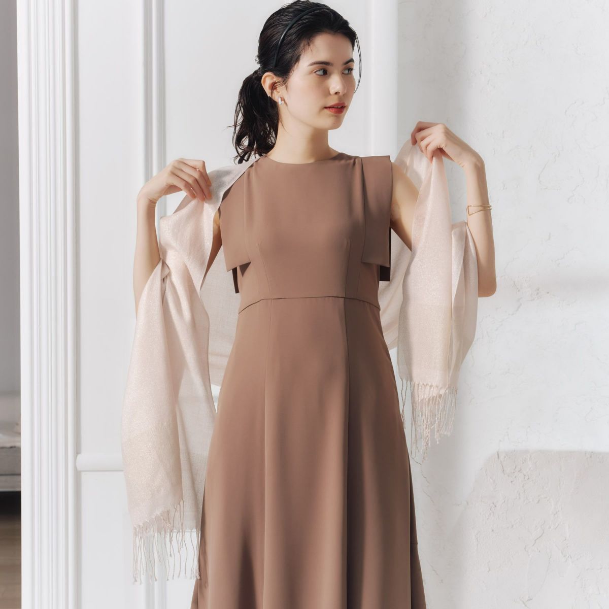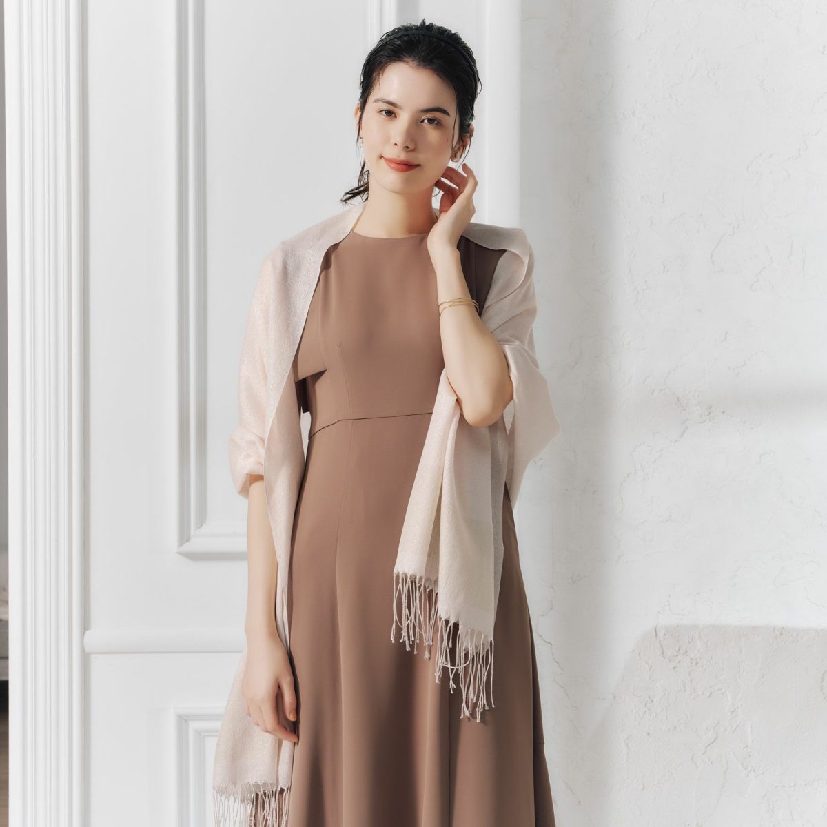 ビーズ付き2WAYシフォンストール<シャンパンゴールド>