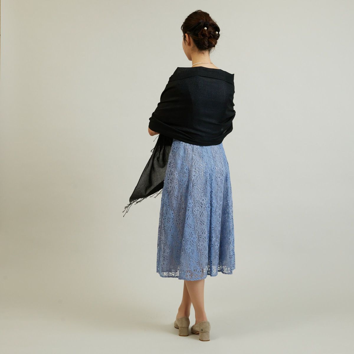 フラワーラメレースストール<ブラック>