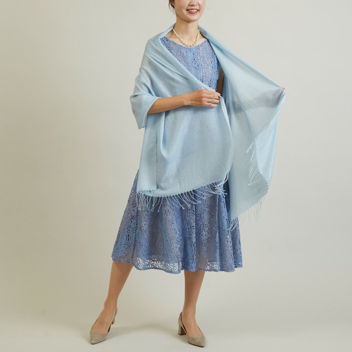 フラワーラメレースストール<ベージュ>