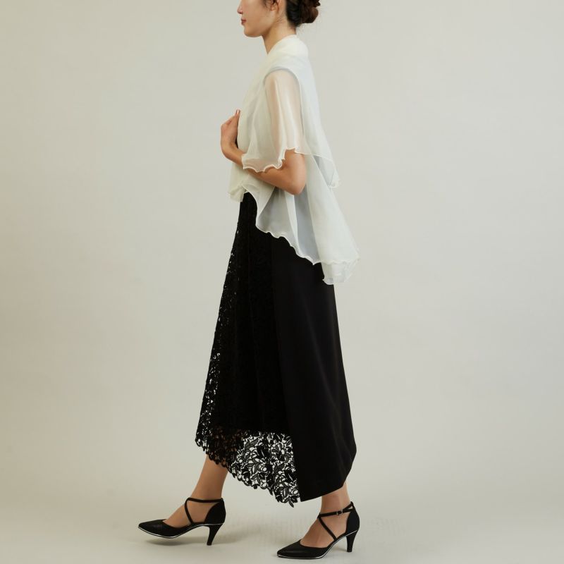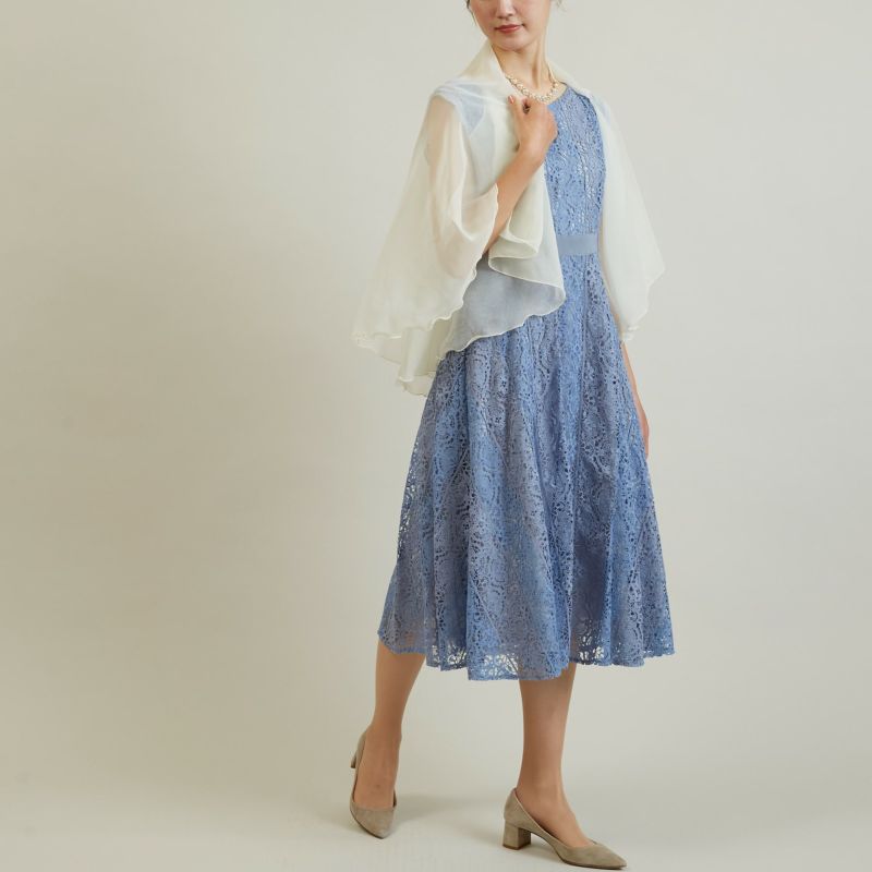 透け感が美しいシアーケープ。ドレスの肌見せを抑えたい時や、いつものワンピースをレイヤードスタイルで楽しみたい時などに、オススメなアイテムです。上半身に華やかさをプラスしながら、程よい透け感で、重たく見えないの特徴です。結婚式や食事会など様々なシーンでご利用頂けます。 上下同じデザインとなっておりますので、タグが下向きになるようご着用下さい。 ※お客様のパソコン機器やスマートフォン及びモニタ環境の違い、または屋内・屋外での撮影により実際の商品の色と相違する場合がございます。