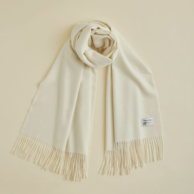 産出量の限られた希少価値の高い無染色のカシミヤを使用した高級感漂うストールです。厳選された良い原料を紡績し、ゆっくり時間をかけて織り上げております。化学染料による染色は一切行わず、カシミヤ本来の色味と光沢を生かしており、繊維へのダメージがありません。また、カシミヤは毛繊維であるにも関わらず、まるでシルクのような光沢を放つという点も大きな特徴です。肌触りが非常に柔らかく滑らかな風合いの為、一度身に着けるとやみつきになってしまう巻き心地の良いストールです。大きいサイズの為、ぐるりと首元に巻けば秋冬ならではの季節感溢れるボリューム感を装え、少し肌寒いときはライトアウター感覚の羽織もの、デスクワークや自宅ではブランケットのような使い方も可能です。巻き方次第で華やかに見える秋~冬~春のスタイリングに便利な1枚です。ビジネス用・ギフト用としての人気の高いロングセラーアイテムです。人にも地球にも優しいエコな商品です。※お客様のパソコン機器やスマートフォン及びモニタ環境の違い、または屋内・屋外での撮影により実際の商品の色と相違する場合がございます。