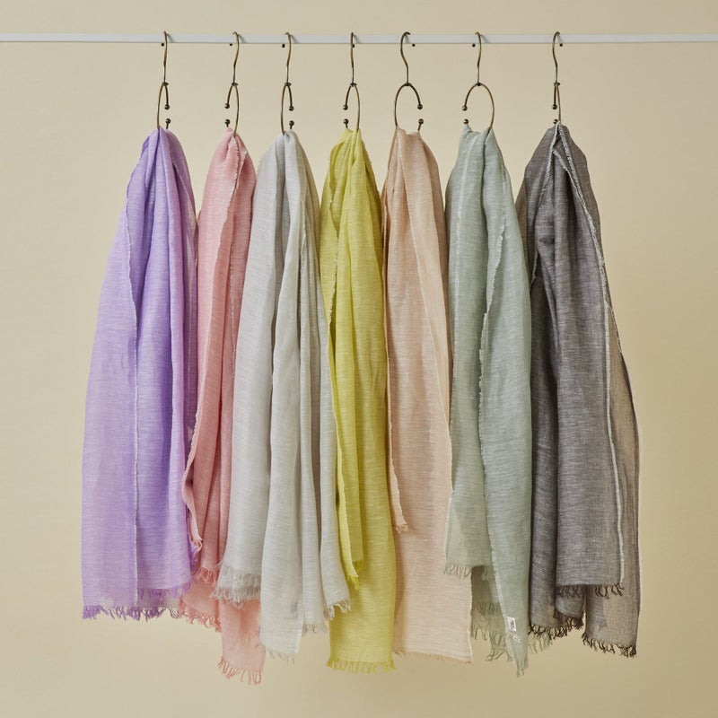 イタリア独自の紡績技術により、とても軽く柔らかい風合いが特徴のリネンストール。 使い始めの硬さが心配な方にもおすすめのアイテムです。