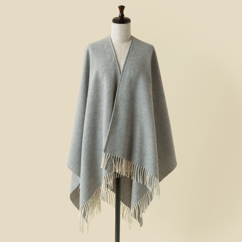 ウールは優れた保温性と通気性を持った天然素材で過剰な汗や湿気を吸収し、外に放出してくれる性質があります。秋が深まる季節にはライトアウターとして、室内ではひざ掛けやお家時間に華を添えてくれる羽織としてもお使い頂けます。