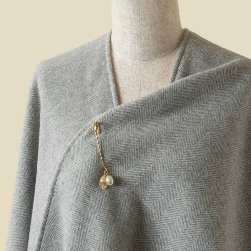 世界的にも繊維産業で有名なイタリア国内にある工場でお作りしたMaria Roukオリジナルの大判ケープです。アートピースのような美しい佇まいが目を惹くスタイリッシュな一枚です。