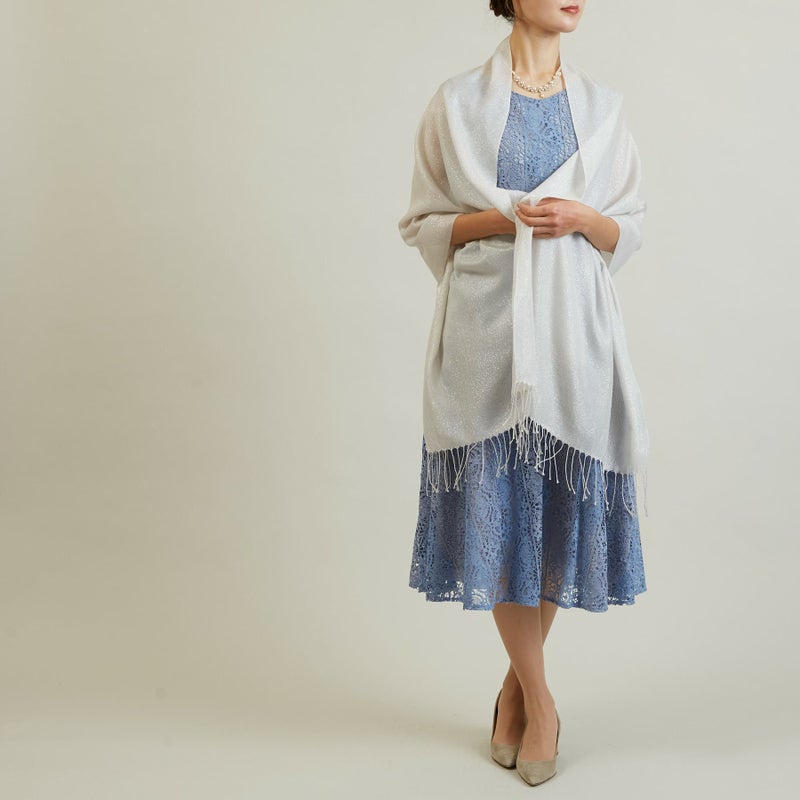 ショールやケープとして結婚式、披露宴、二次会、お食事会、謝恩会など様々なシーンでご利用いただける便利なラメストール。繊細且つ上品なデザインはフォーマルやオケージョンにピッタリです。背中や肩、二の腕など気になる部分をふんわりカバーしてくれます。