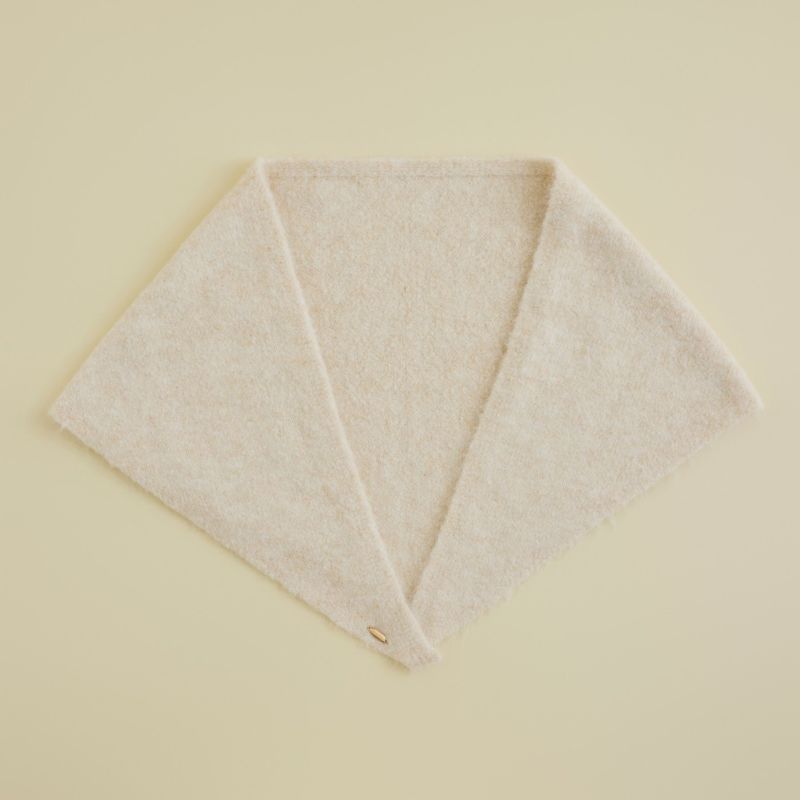 ふんわりと心地よい温かさで包んでくれる三角ショールが新登場。 肩に羽織ってケープ風に、首元にくしゅっと巻けば防風対策にも。 Maria Rouk(マリアルーク)オリジナルのゴールドプレートをアクセントにしました。