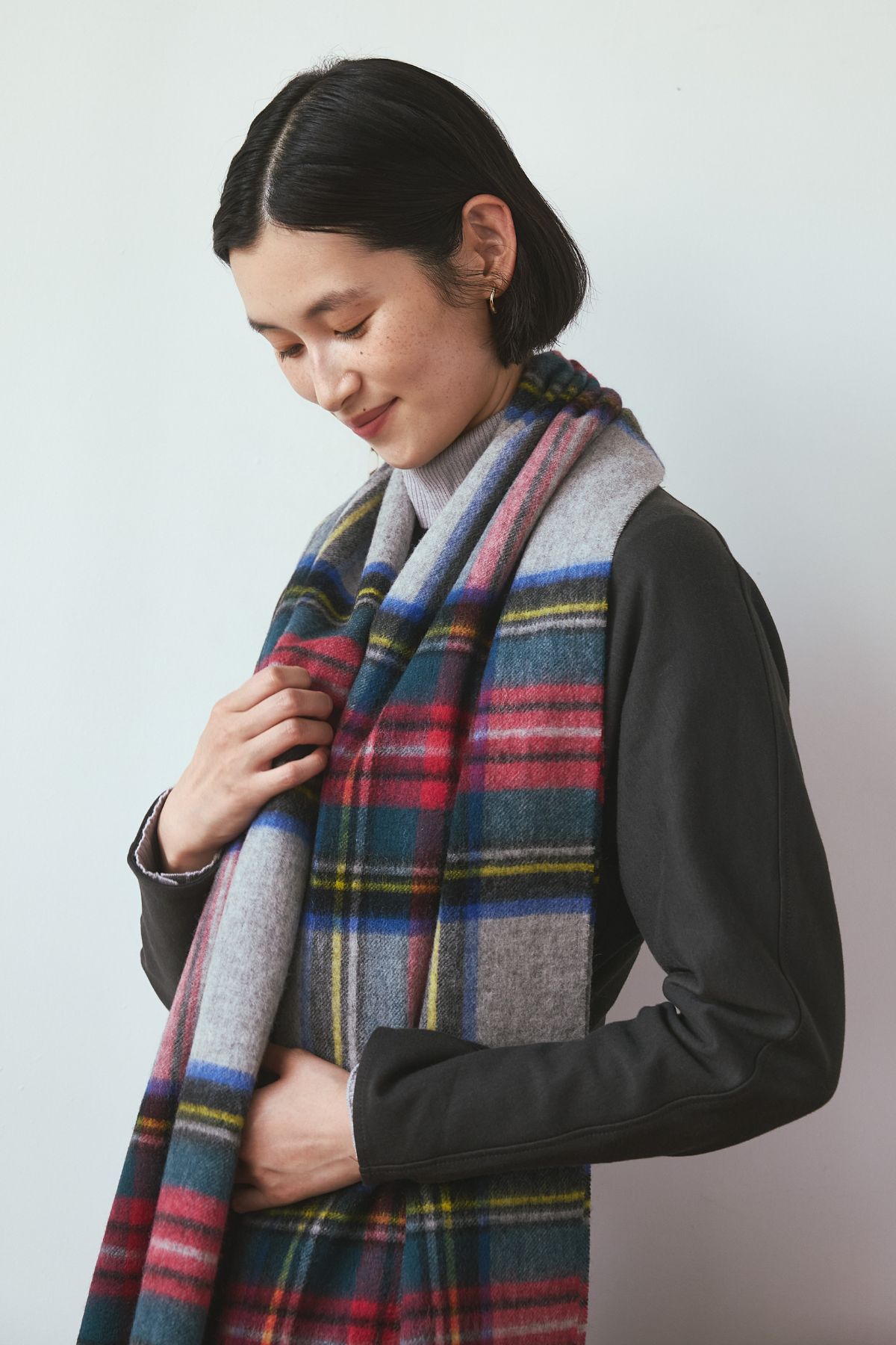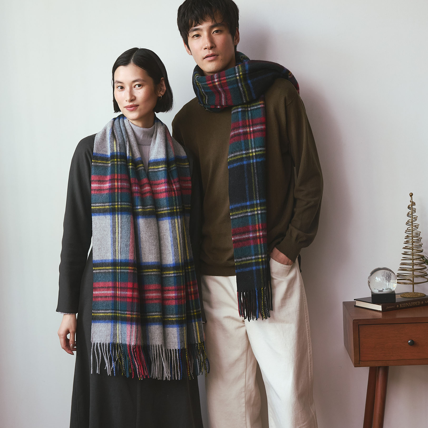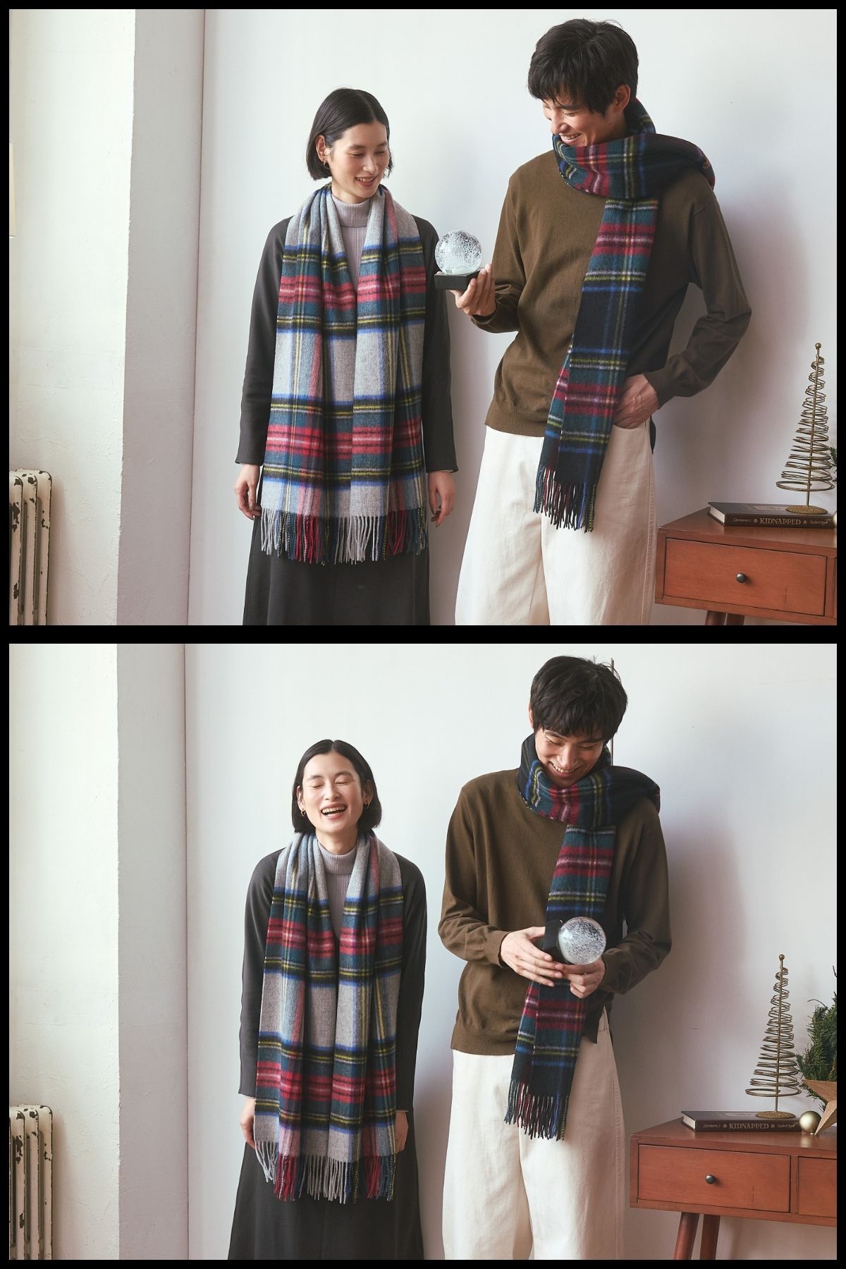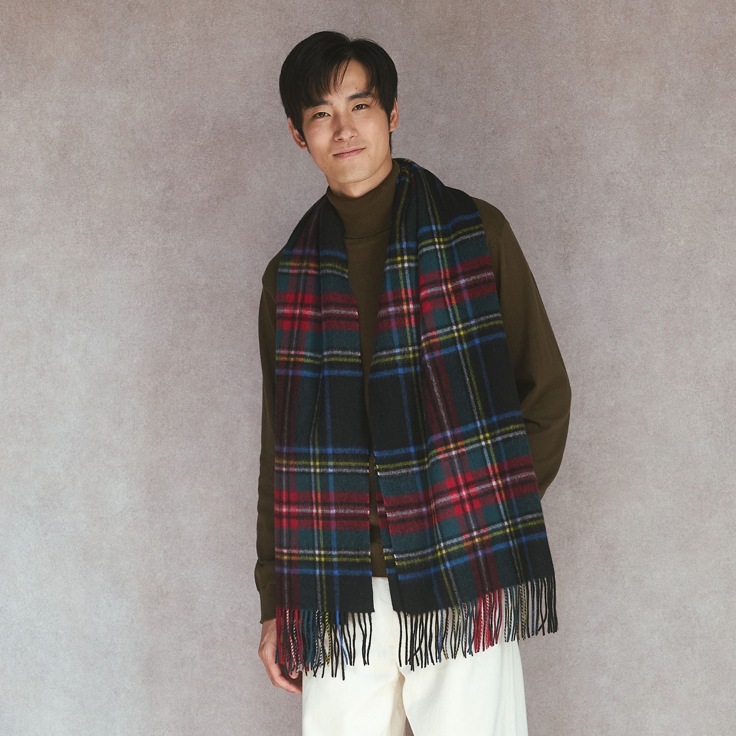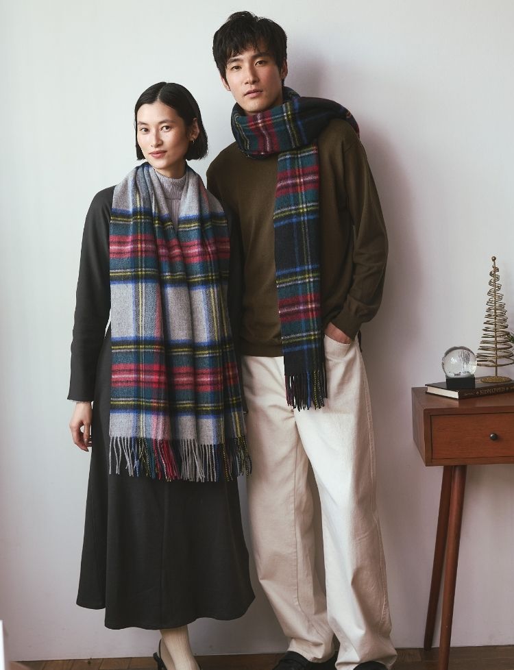 冬ムードが高まるこの季節におすすめしたいのが、ウール100%の大判イングランドチェックストールを使ったお揃いコーデ。上質なウールならではのぬくもりと、英国調チェックの品のある存在感が、ふたりの冬スタイルをよりあたたかく、より特別に彩ります。巻き方を変えるだけで印象がぐっと変わるので、カジュアルにもきれいめにも相性抜群◎