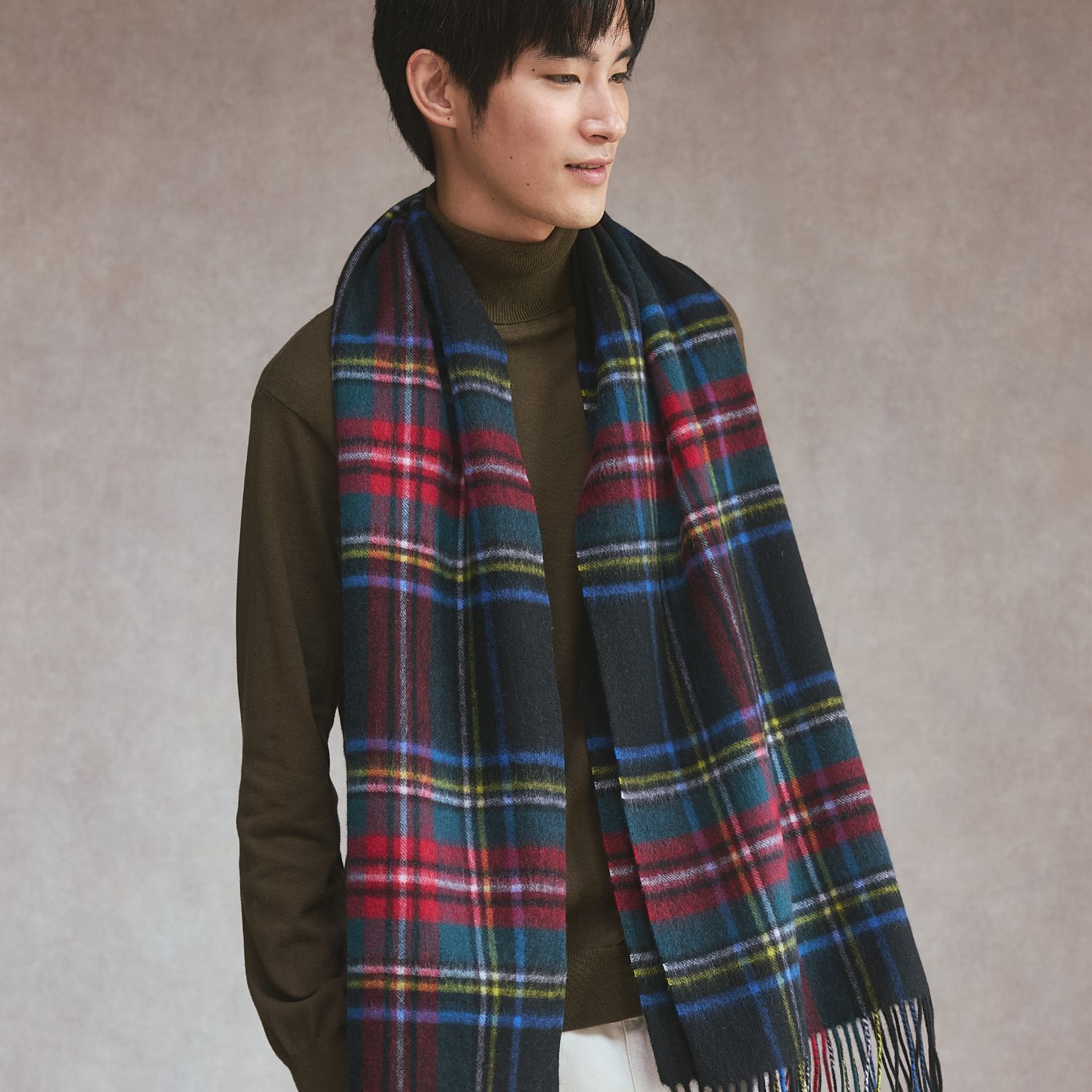 カシミヤブレンドチェックリバーシブルマフラーは、上質な温もりと洗練されたデザインが魅力の冬アイテム。チェック柄がスタイルのアクセントになり、暗くなりがちな冬のコーディネートを程よく演出してくれます。表と裏で雰囲気が変わるリバーシブル仕様に加え、カラーバリエーション豊富なので、お揃いコーデにも取り入れやすく、ペアでも色違いでも楽しめます。一緒に贈りあったり、一緒に選ぶ時間もきっと楽しいひと時に♪