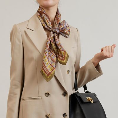 レトロ柄スカーフ<カーキ> シルク100% 日本製のレビュー