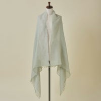 この分量でこのお値段はなかなか出会えないと思います。肌触りよく初夏から初秋まで活躍してくれるのが嬉しいです。グレーがかったセージグリーンのようなお色が素敵ですが絶妙に青みと黄みの中間で少し難しいところが☆マイナス1。でも合わせがいがあって面白そうです。 それに、色が今ひとつでタンスの肥やし状態だったものが合う。間をとりもってくれるというか。白髪が混じると似合う色も広がりますし、もう手放すより使い切るつもりでいます。