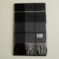 モノトーンで合わせやすいです。黒系のセーターだと白いストールは毛が気になりますが、こちらは単色ではなく柄物で適度な華やかさがあり気に入りました。 -
