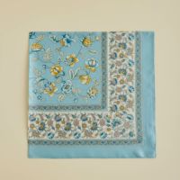 オリエンタルフラワースカーフ<ブルー> シルク100% 日本製