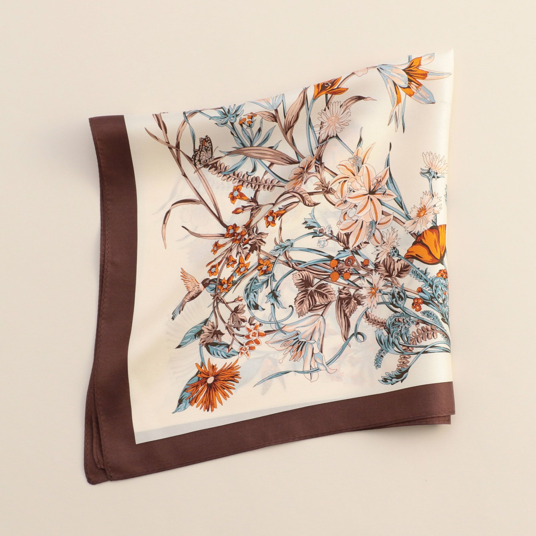 ボタニカルスカーフ<ブラウン> シルク100% 日本製