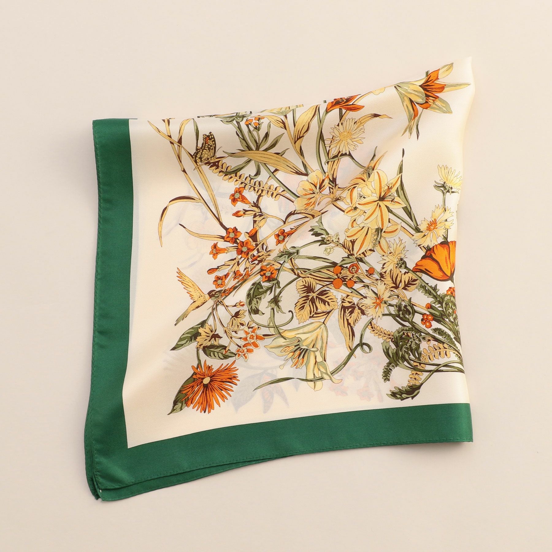 ボタニカルスカーフ<グリーン> シルク100% 日本製