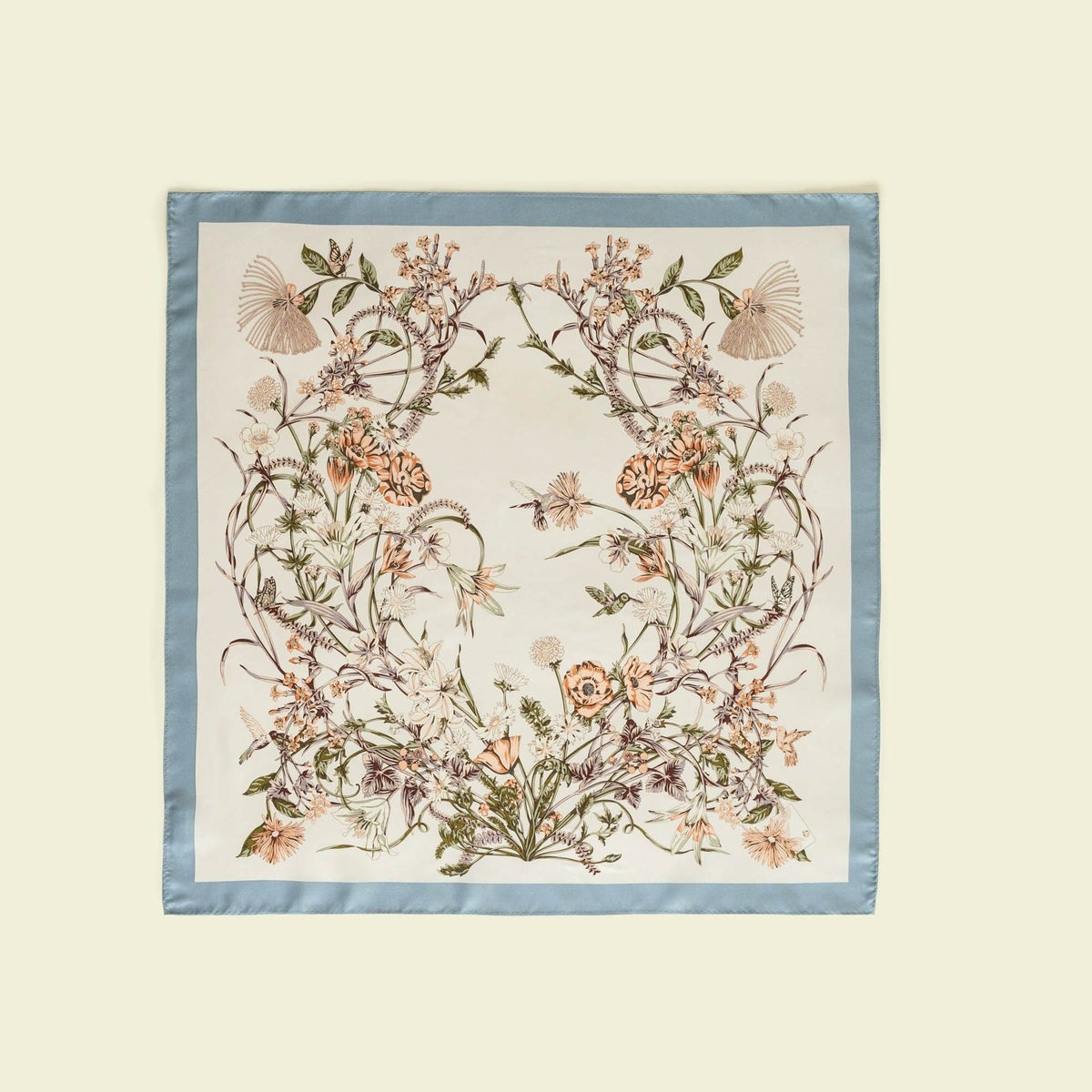 ボタニカルスカーフ<ブルー> シルク100% 日本製