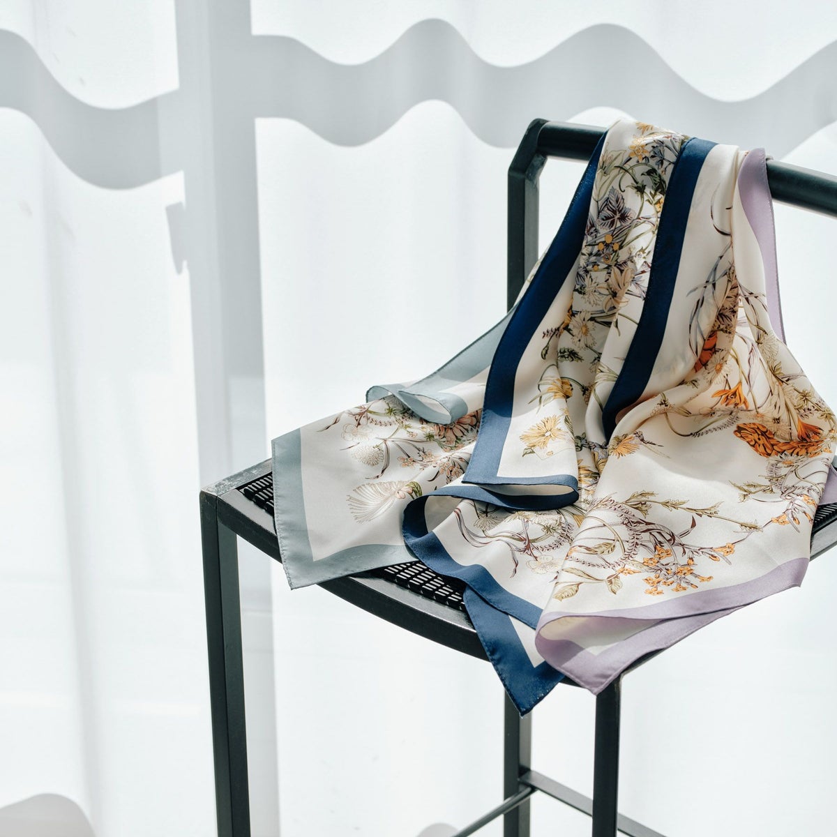 ボタニカルスカーフ<ネイビー> シルク100% 日本製