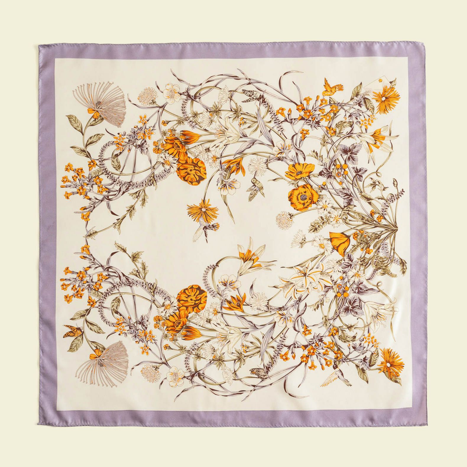 ボタニカルスカーフ<ラベンダー> シルク100% 日本製