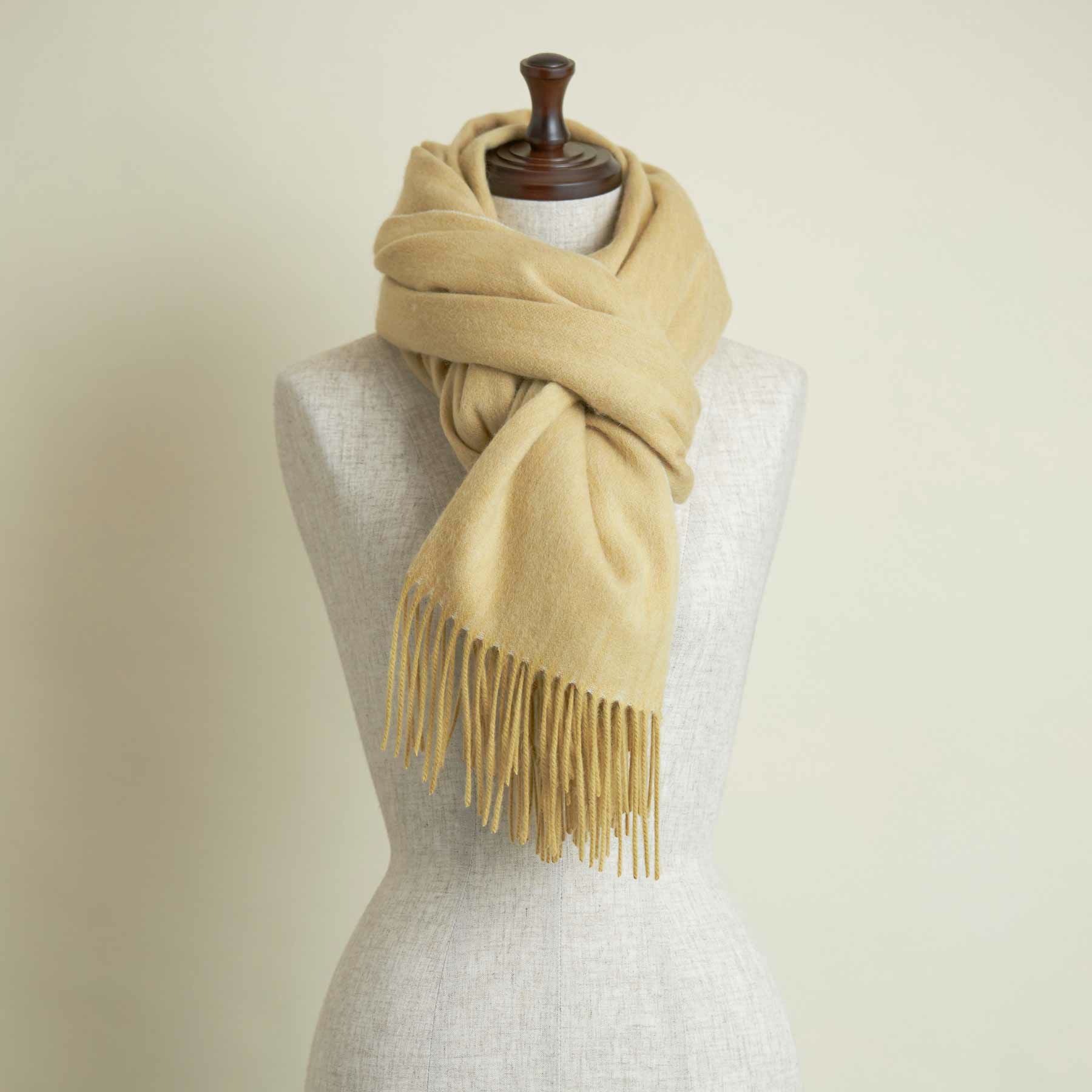 【会員登録】で300ptプレゼント★ ウール100%大判無地リバーシブルストール<イエロー>