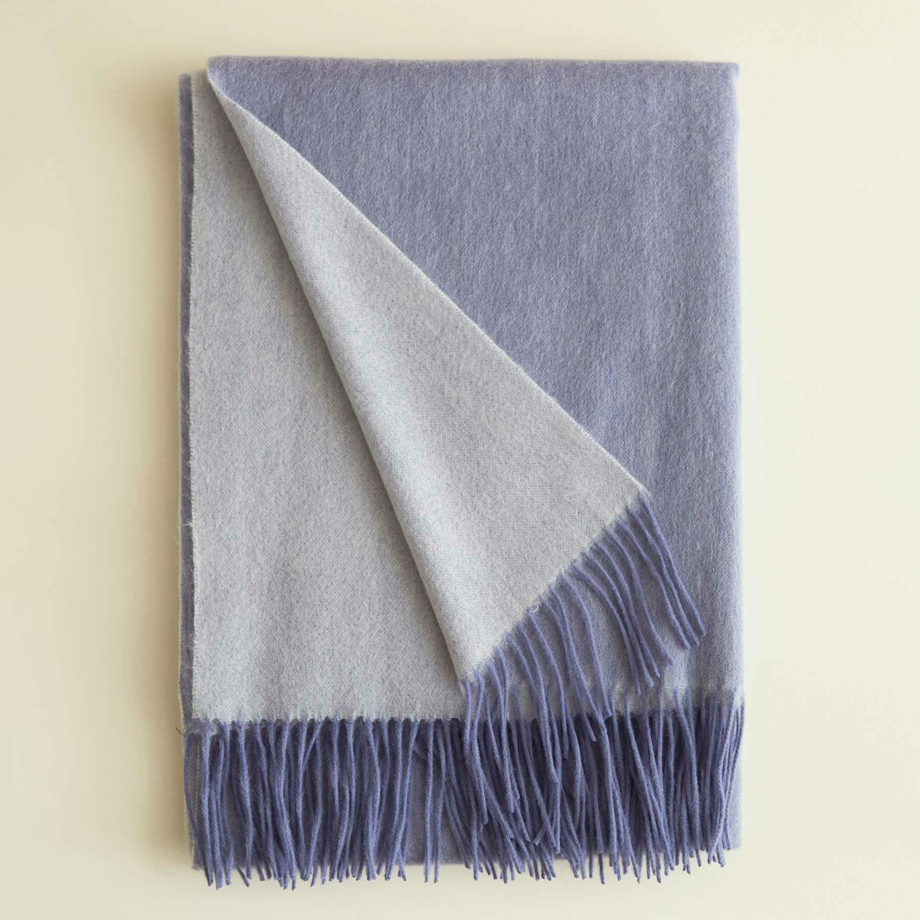 【会員登録】で300ptプレゼント★ ウール100%大判無地リバーシブルストール<ラベンダーブルー>