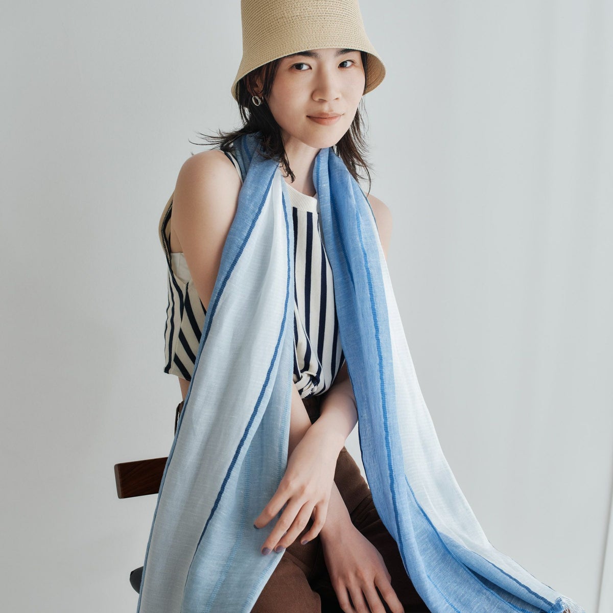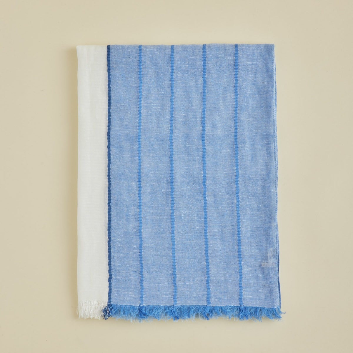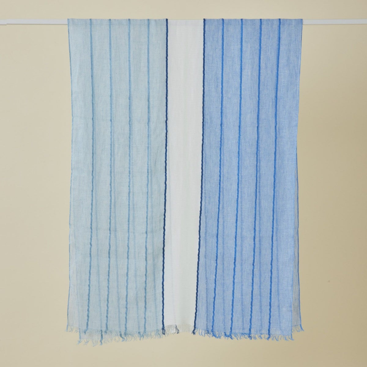 【会員登録】で300ptプレゼント★ イタリア製 ストライプリネンストール<ブルー>