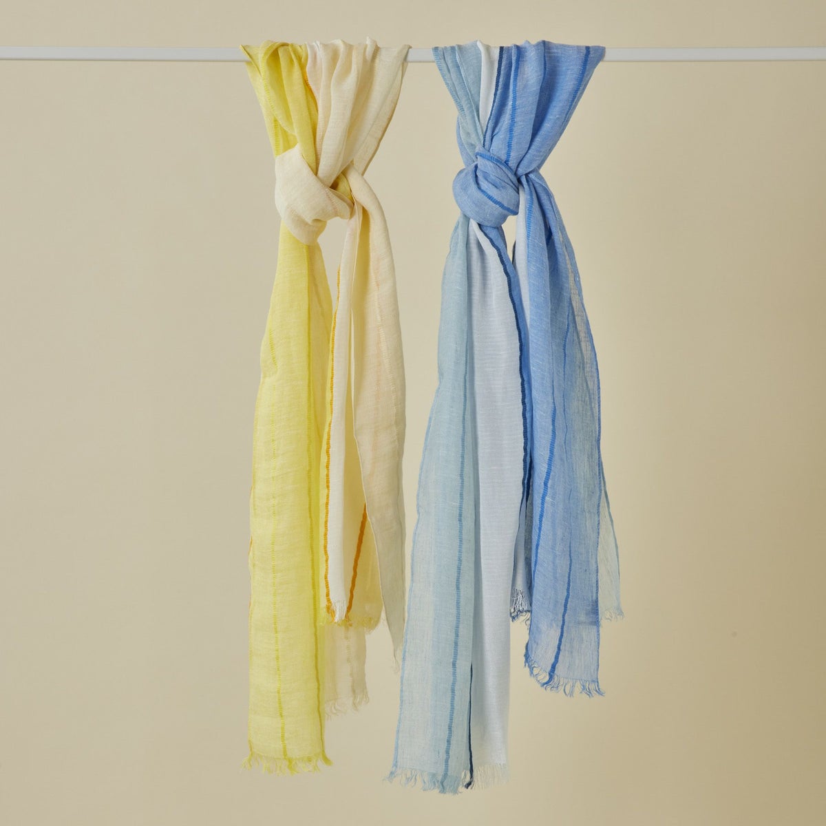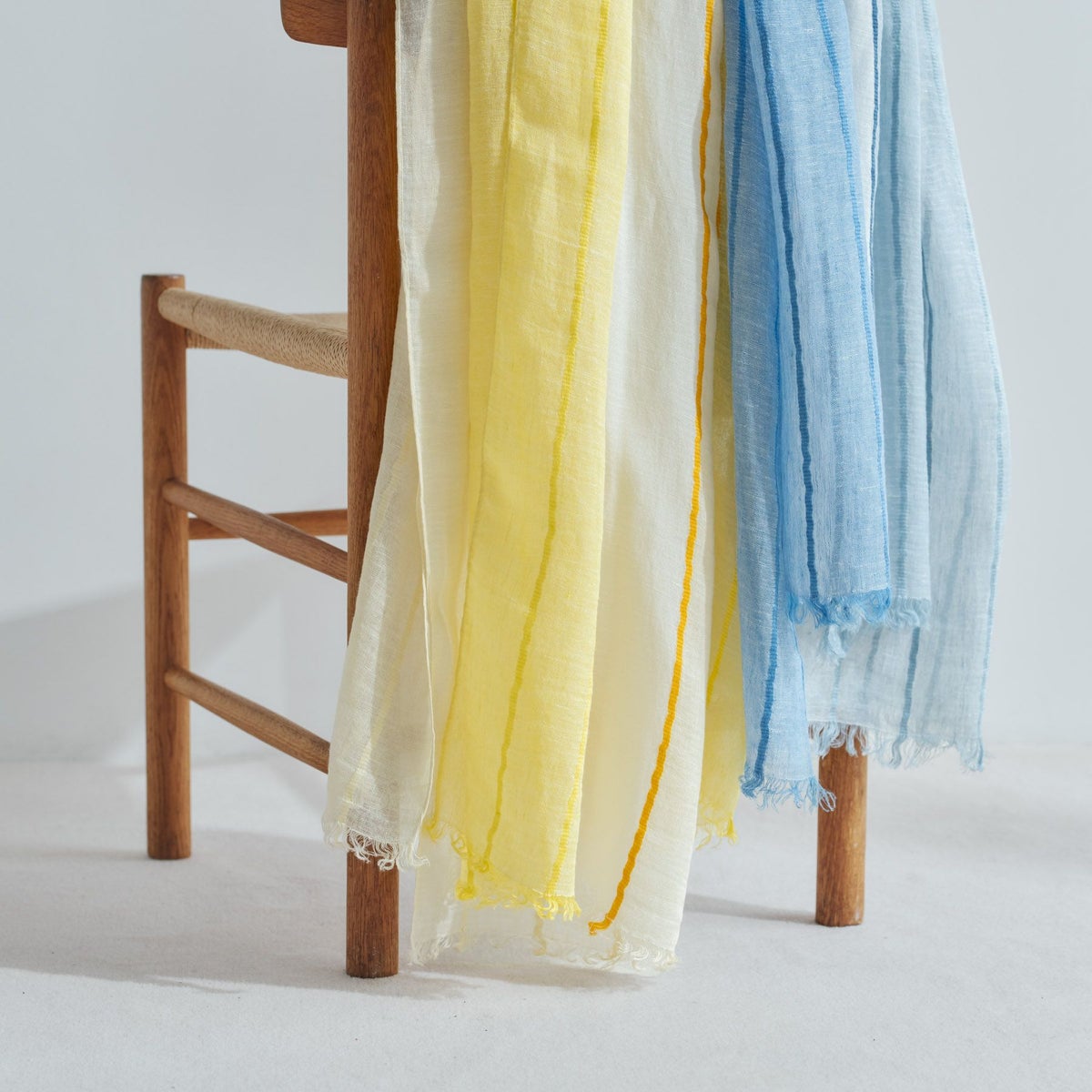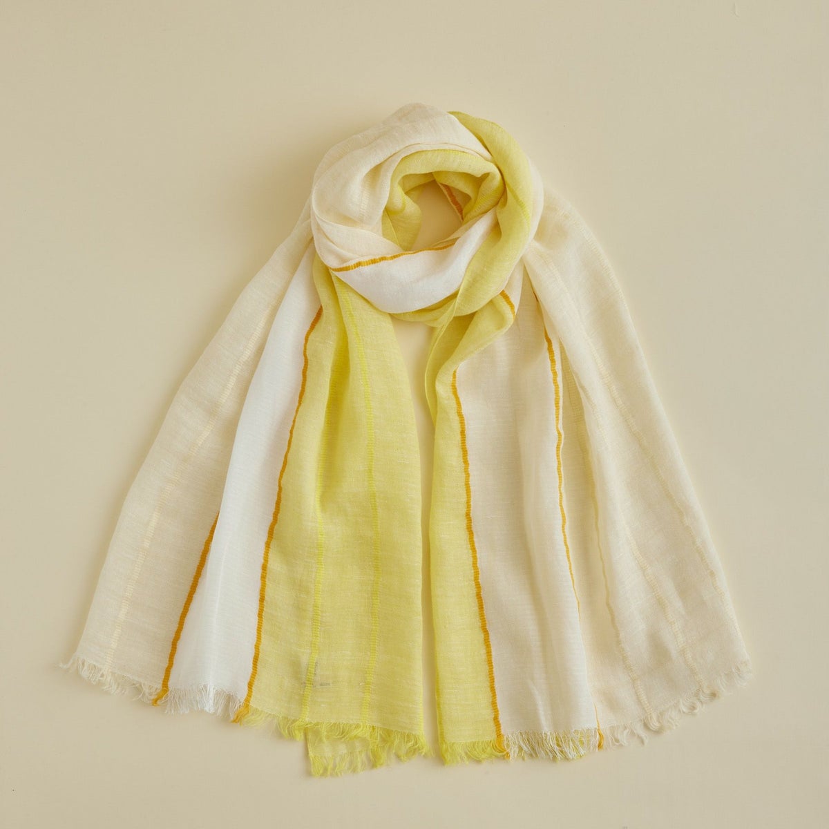 【会員登録】で300ptプレゼント★ イタリア製 ストライプリネンストール<イエロー>