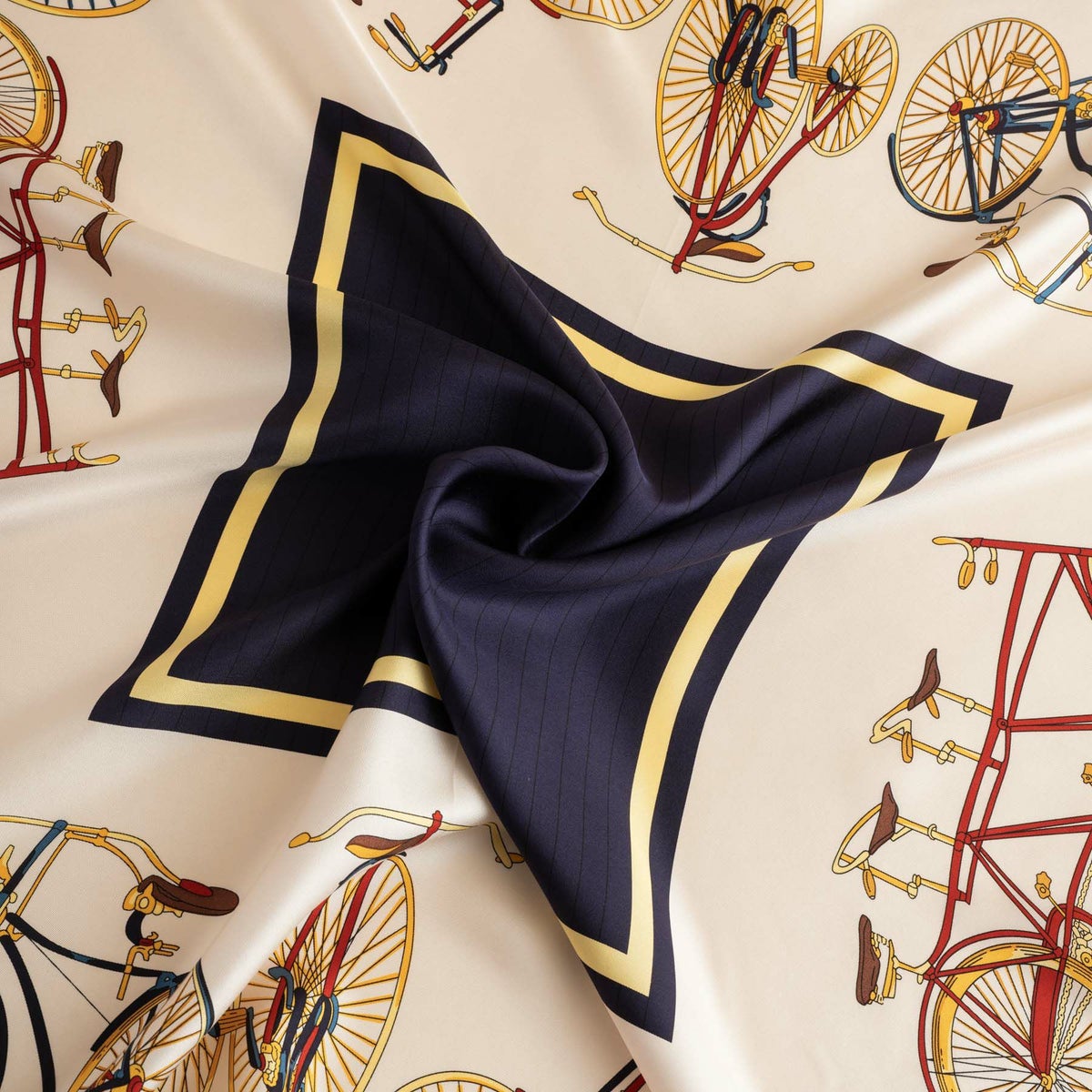 自転車柄スカーフ<ネイビー> シルク100% 日本製