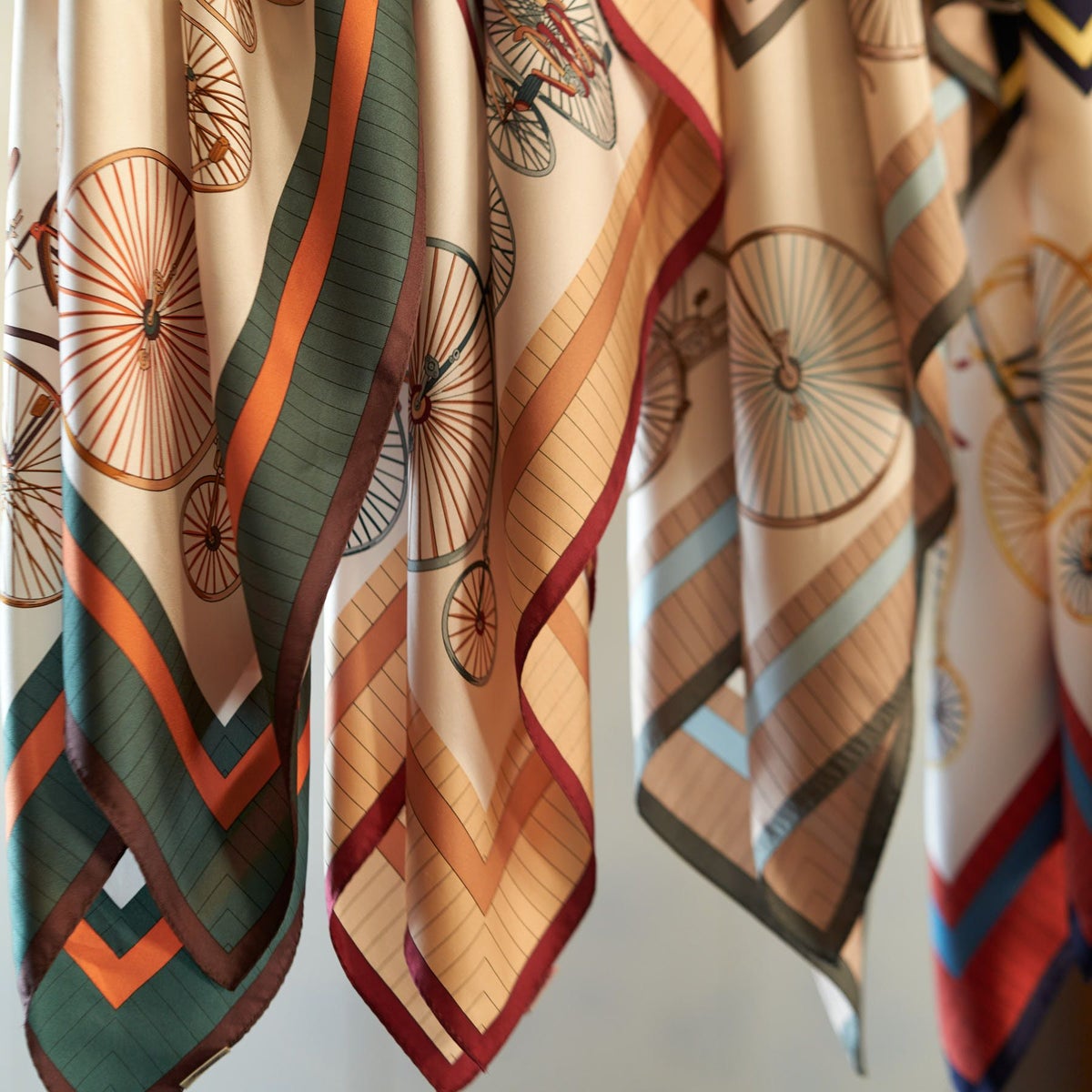 自転車柄スカーフ<カーキ> シルク100% 日本製