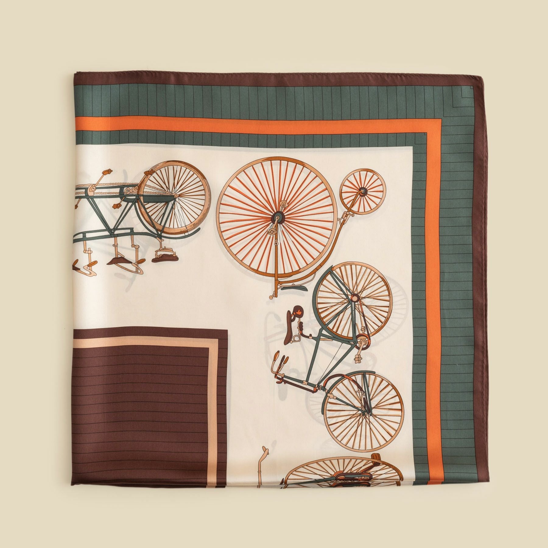 自転車柄スカーフ<ブラウン> シルク100% 日本製
