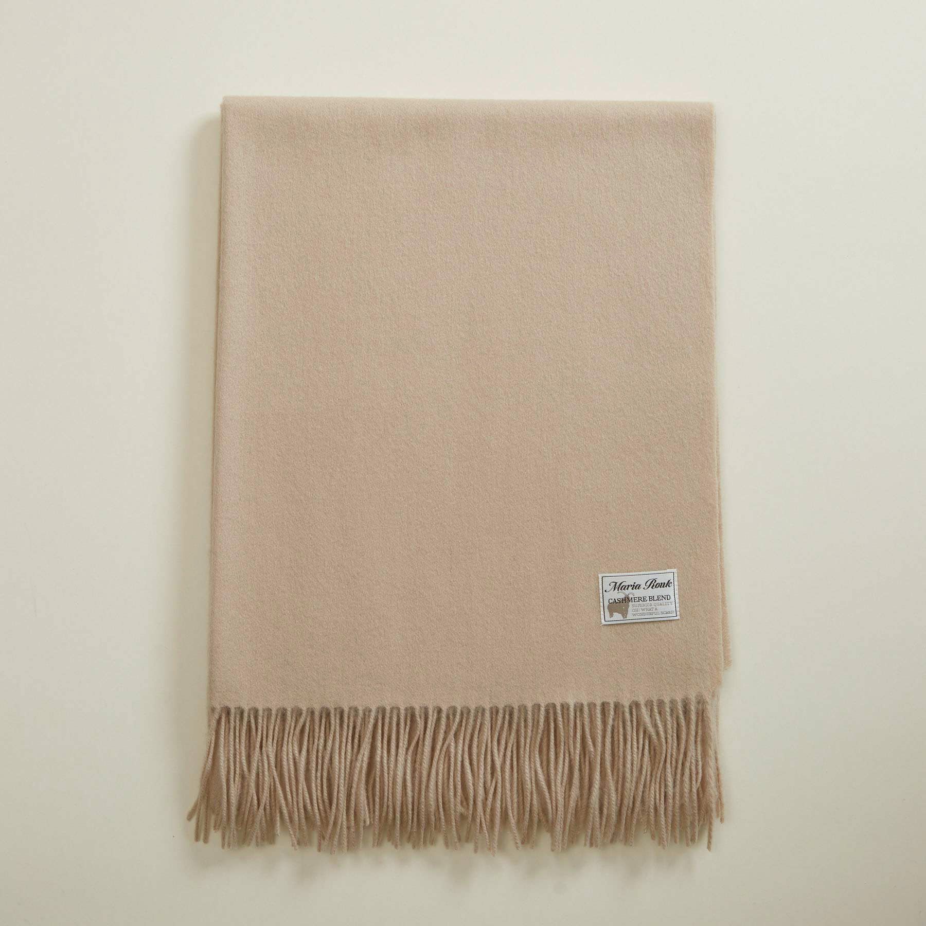 【会員登録】で300ptプレゼント★ カシミヤブレンド大判無地ストール<ベージュ>