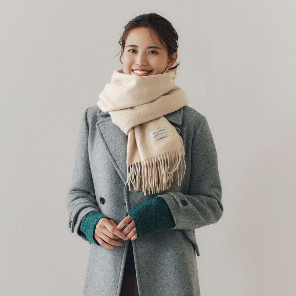 カシミヤブレンド大判無地ストール<グレージュ>