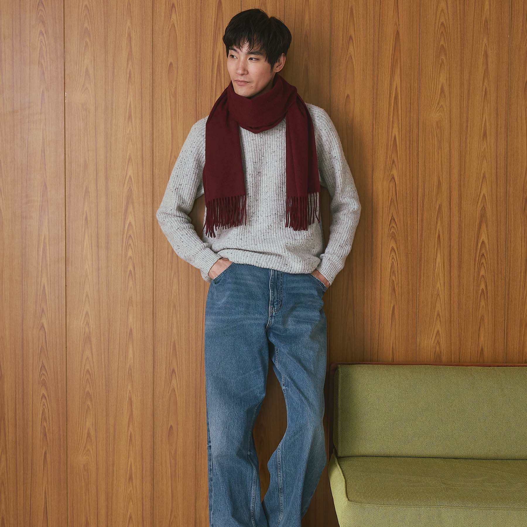 カシミヤ100%無地マフラー<グレイカーキ>