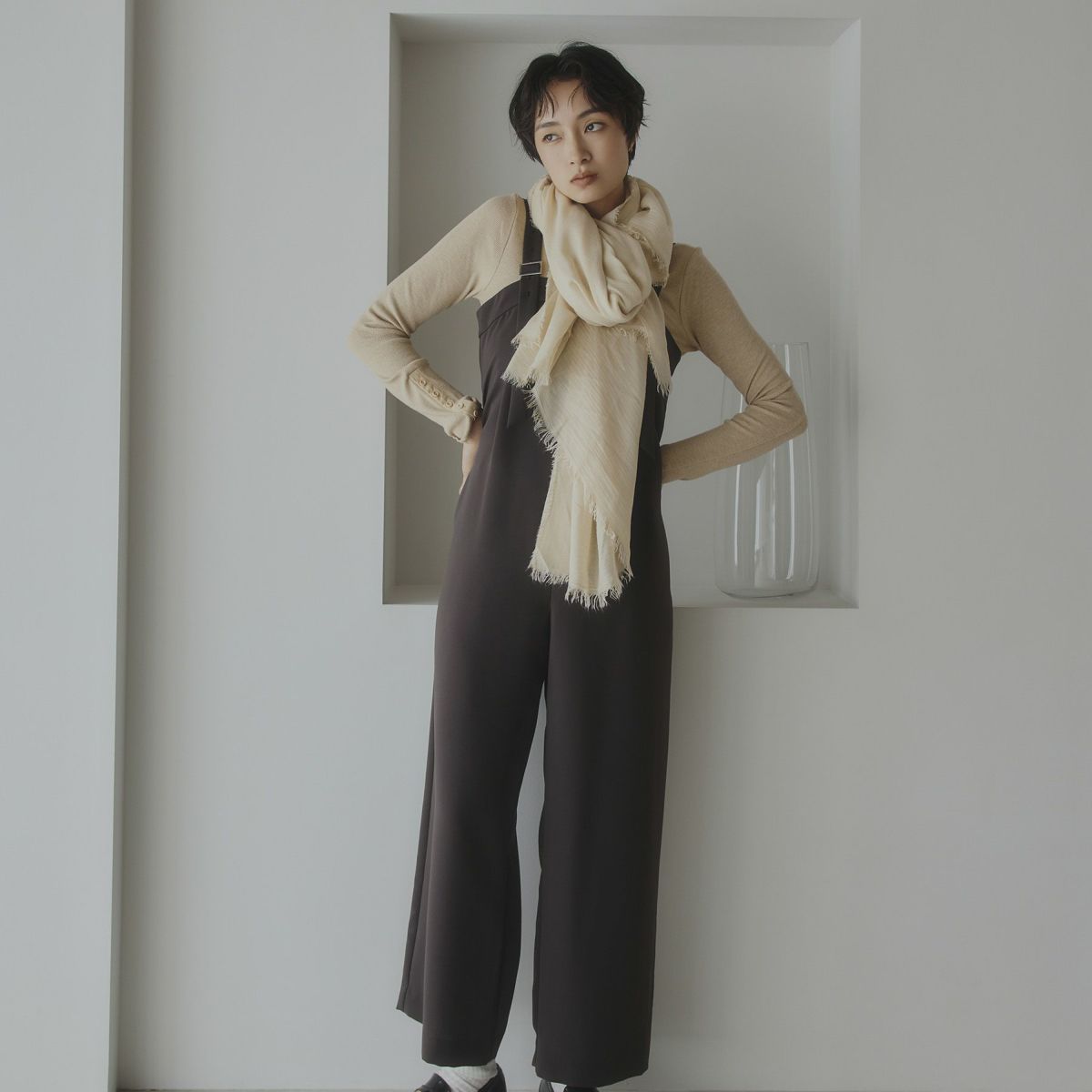 イタリア製大判モダールカシミヤストール<アイボリー>